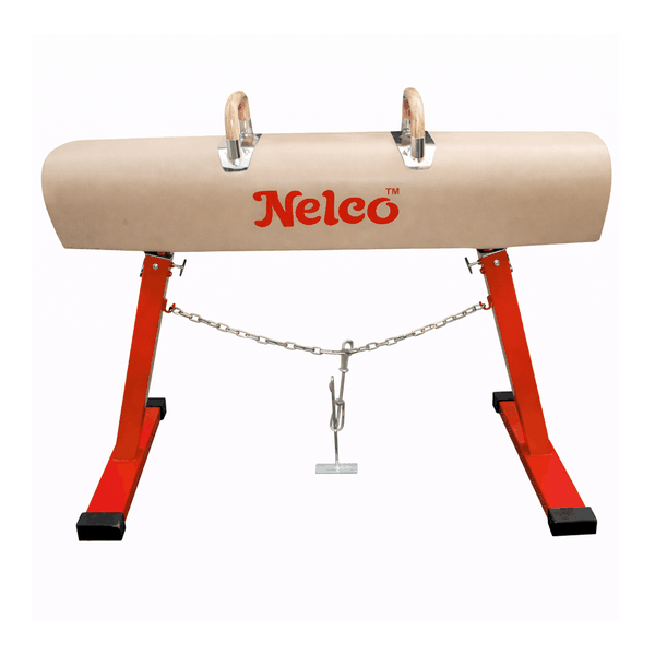 Cavalo com alças oficial para ginástica artística. Corpo produzido em couro sintético, com base de aço e sapatas antiderrapantes. Alças produzidas em madeira laminada para melhor aderência. Conta ainda com sistema de ancoragem para maior estabilidade. Material conforme regras da FIG.